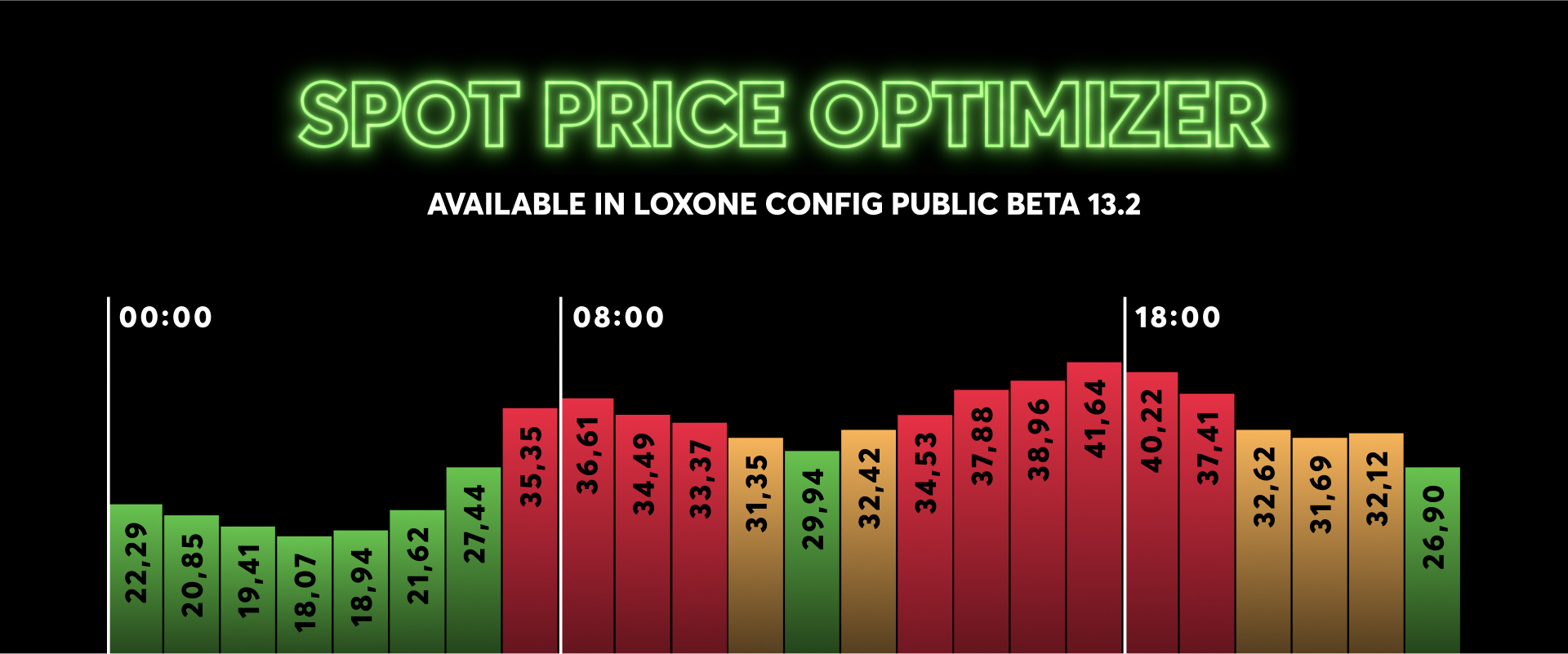 A trend is emerging: more and more electricity providers are offering tariffs with dynamic hourly electricity prices. With the prices sometimes fluctuating massively. This is where the “Spot Price Optimizer” Function Block comes in very handy, which is being introduced with our brand new Loxone Config Public Beta 13.2. Allowing you to take price fluctuations on the spot market into account in your energy management, and, ultimately, save money.