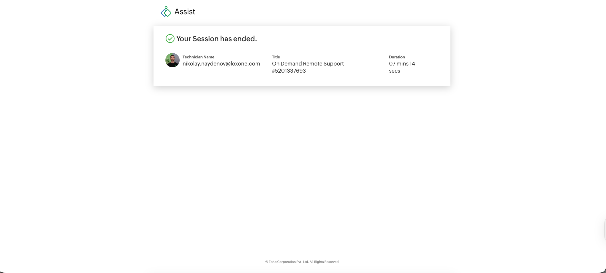 (You may need to download Zoho Assist if it prompts you to, if you haven’t done this before.)