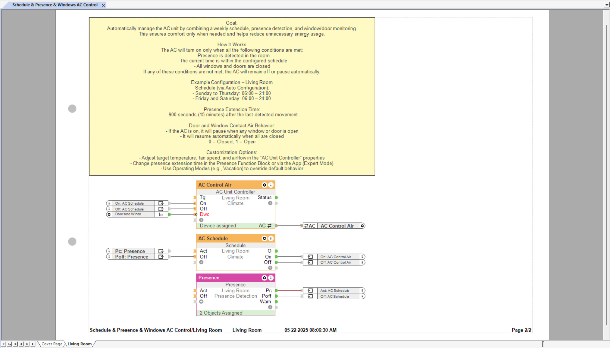 Automatic and energy-efficient air conditioning control – dependent on presence, schedule and window status.