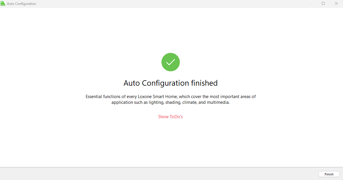 The final step is to go through the ‘To-Do’s‘ to complete any manual tasks that Auto Config cannot perform. For example, if you are using relay blind control, you will need to manually connect the two relays for the up and down motion of the blinds, as Auto Config cannot distinguish between the two. Below, you’ll find an overview on where to locate the To-Do’s.