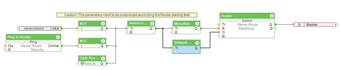 To avoid always having to make the trip to where the router is situated you can use a Smart Socket Air to take care of the automatic router rest when needed. This will then give you the ability to reset your router remotely, however that is not all. Within Loxone Config, you can create logic that will switch your router off then on if it registers 3 unsuccessful pings in a row – giving you an automatic router reset. You could, for example, ping the Google Servers to test whether your connection is working. It is also possible to set a specific time for a router to be turned off and another for it to turn back on – automatically switching the router off at night and back on in the morning, for example.