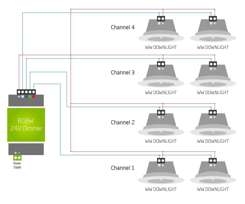 The LED Ceiling Spot WW has a 24V and Negative connector built in.