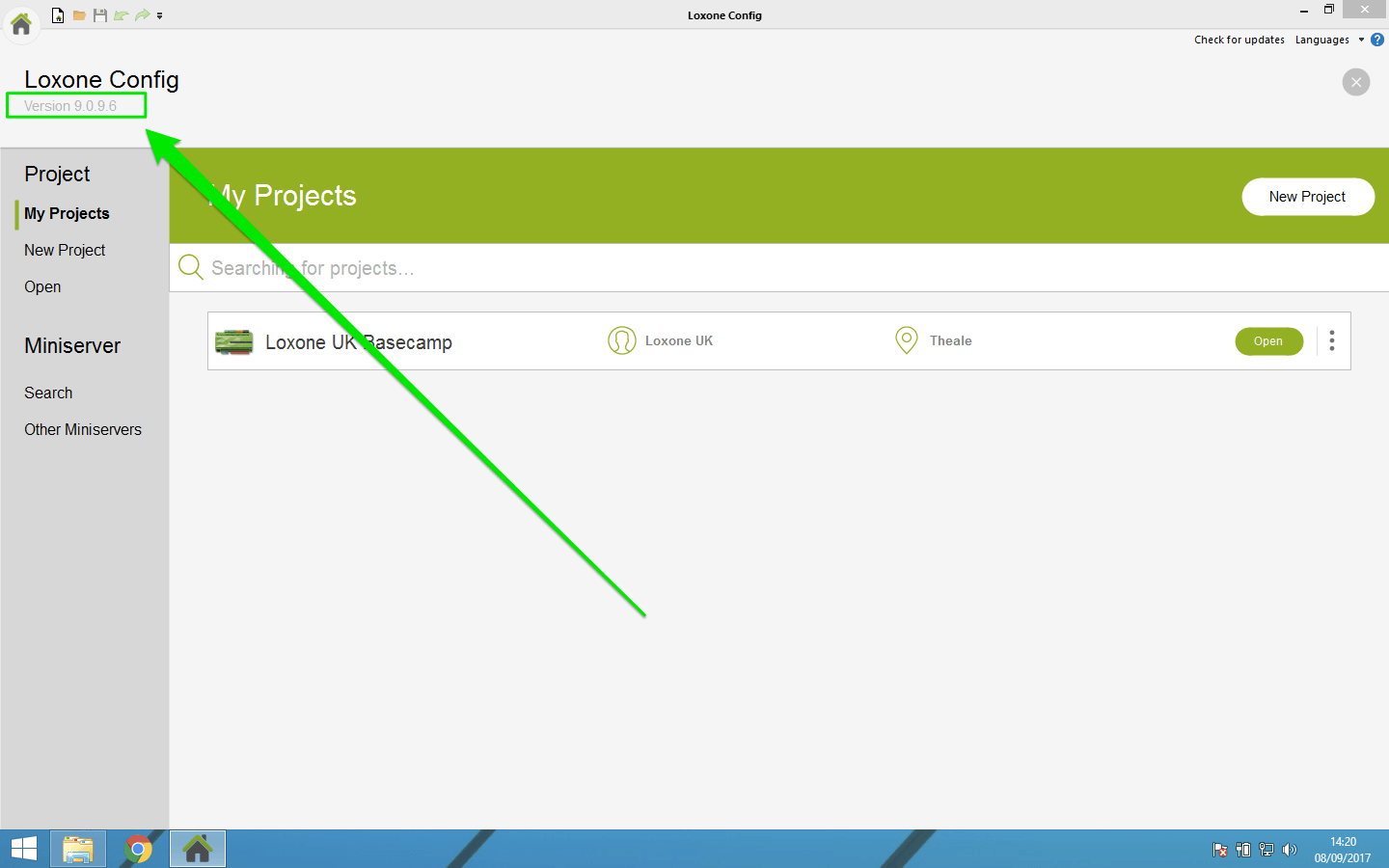 When you have Loxone Config open you can check what version it is you have open by looking at the area highlighted in the screenshot below.