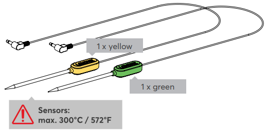 Do not use the temperature sensors on an induction hob. Malfunction in the operation of the device and/or incorrect temperature readings may occur.