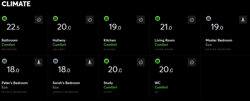 This also means that switching the boiler on or off is only dependent on temperature, and only in one room at that. A conventional thermostat won’t be able to factor in other elements that smart home and building automation systems can see, like the passive heat from the sun or presence. The system will try to reach the same temperature across the home in each room, whether it’s an empty spare room, a bathroom that only needs to be warm first thing in the morning or in the evening, or an at-home office only used during weekdays.