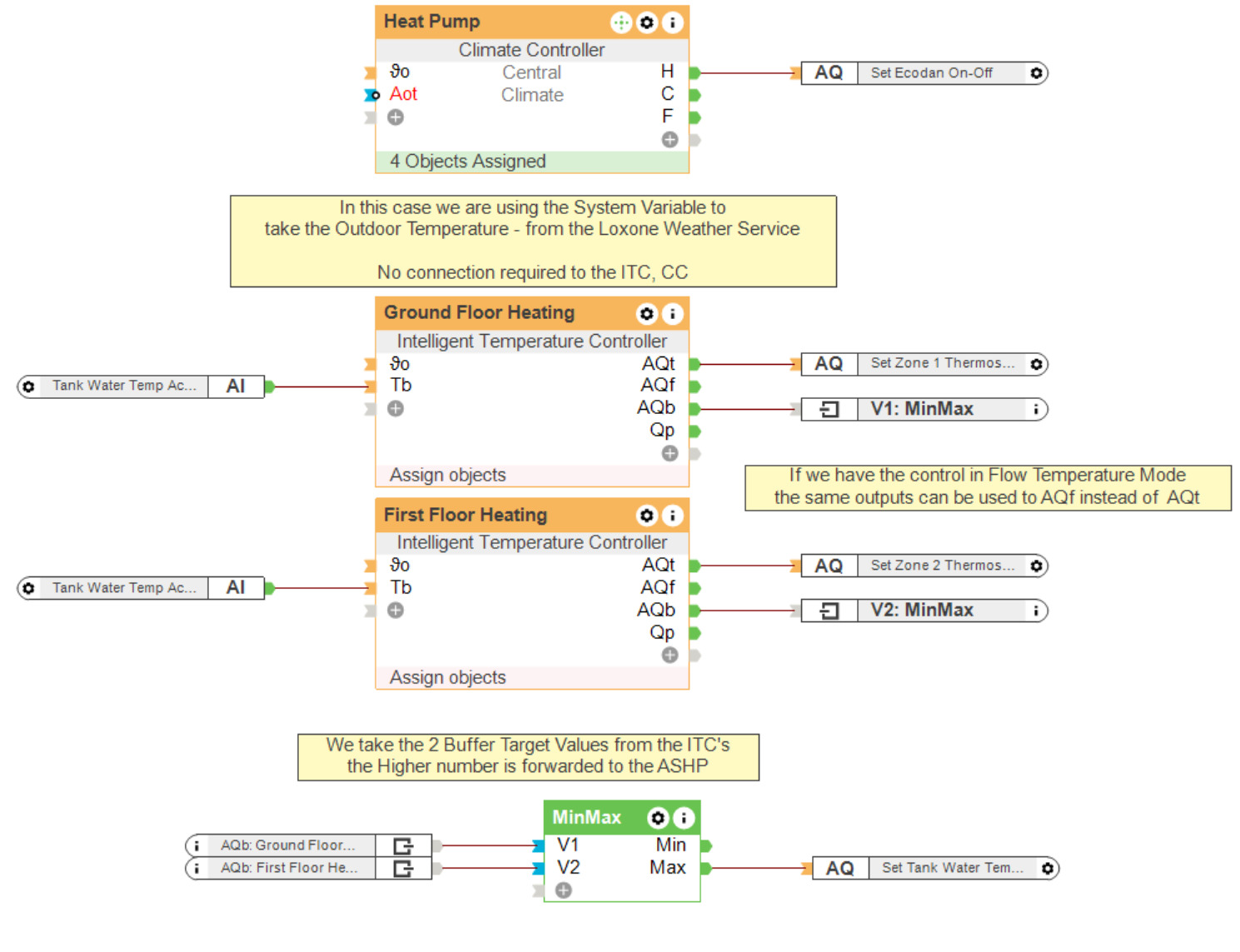 If your customer has an air source heat pump, we can further optimise that based on the information given from the Loxone system. For example, we can set the target flow temperatures of the hot water and the target temperature of the buffer tank based on the demand of the system and outside weather temperature to make the pump run more efficiently. Essentially, it is being able to read all of these data points (temperature and size of each room, the outside temperature, the flow temperature) that allows a system like Loxone to truly manage a zoned heating system in the most energy-efficient way. It is the power of the software and the calculations that are happening behind the scenes that deliver the most optimal solution for zoned heating control.
