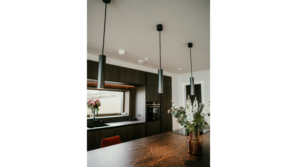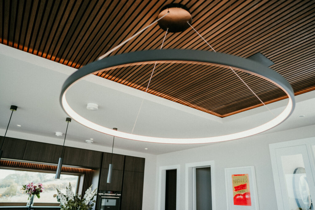 With the clear focus on a need for combining lighting circuits such as RGBW LED strip, WW LED strip, and dimmable fittings including spots and pendants, it became clear to us that Loxone was the obvious choice for this project.Once the system choice was confirmed, this allowed us to look deeper at the lighting requirements with the client and architect, and begin specifying fixtures which we could supply, such as Loxone Tree Spots and Loxone Pendulum Slim fittings. Combining these with some decorative 230v dimmable fixtures (connected via Loxone Dimmer Extensions) gave the client full control of the system when needed, as well as automation via Presence Sensors and scheduling (particularly useful for outside lighting).