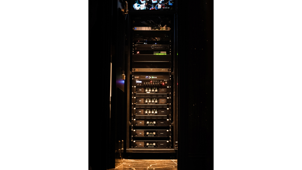 We also installed PA audio and moving head stage lighting which can be turned on/off and configured remotely via 3rd-party console and DMX extension.