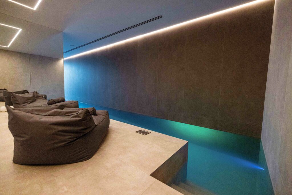 We were able to easily deliver three impressive sustainable homes with smart lighting, climate, audio, access and security control, all designed and installed by Loxone London.In every room, there is a mix of elegant lighting fixtures, LED strip lighting and Loxone spots to create both a functional and aesthetic design, allowing for perfect lighting for every occasion. Presence sensors throughout means that the home intelligently delivers the right lighting mood at the right time. We even used intelligent presence sensing to enable the area outside the steam room to glow red if occupied.