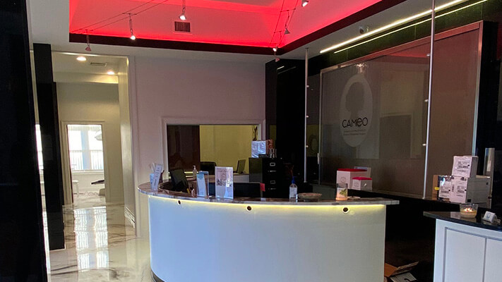 Jameel: We used crown molding LED channels to create custom light fixtures that ended up working like wall-washers. setting each wall on a different RGBW Dimmer. This made for some cool effects at the front desk, waiting room, and the other areas.