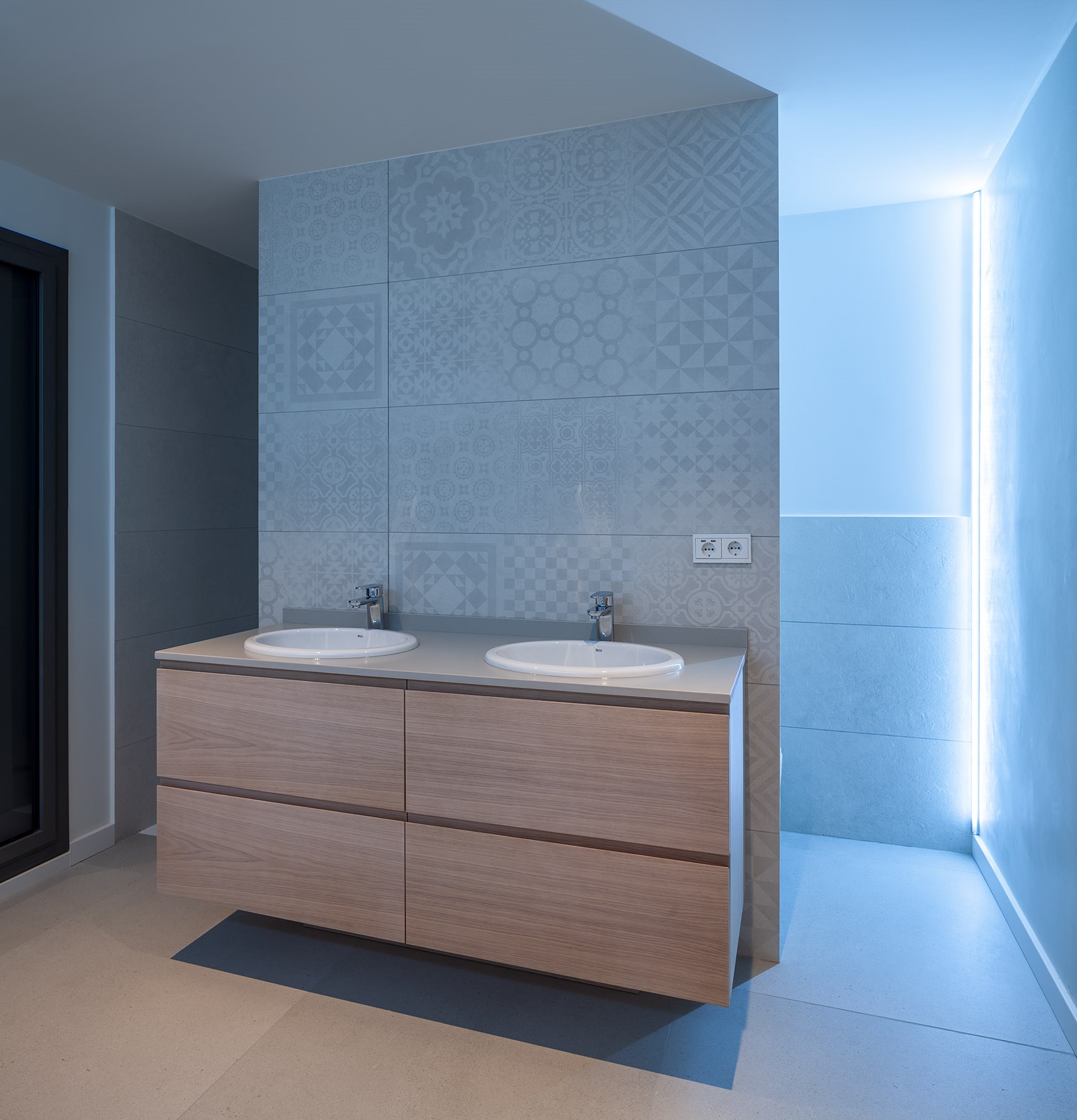 - Artificial radiation: The lighting is operated with 24V DC to avoid the generation of electromagnetic fields. The sockets are also equipped with shielded cables to minimise radiation. Particular attention was paid to the lamps chosen for the home, especially for places such as the bedside table.
