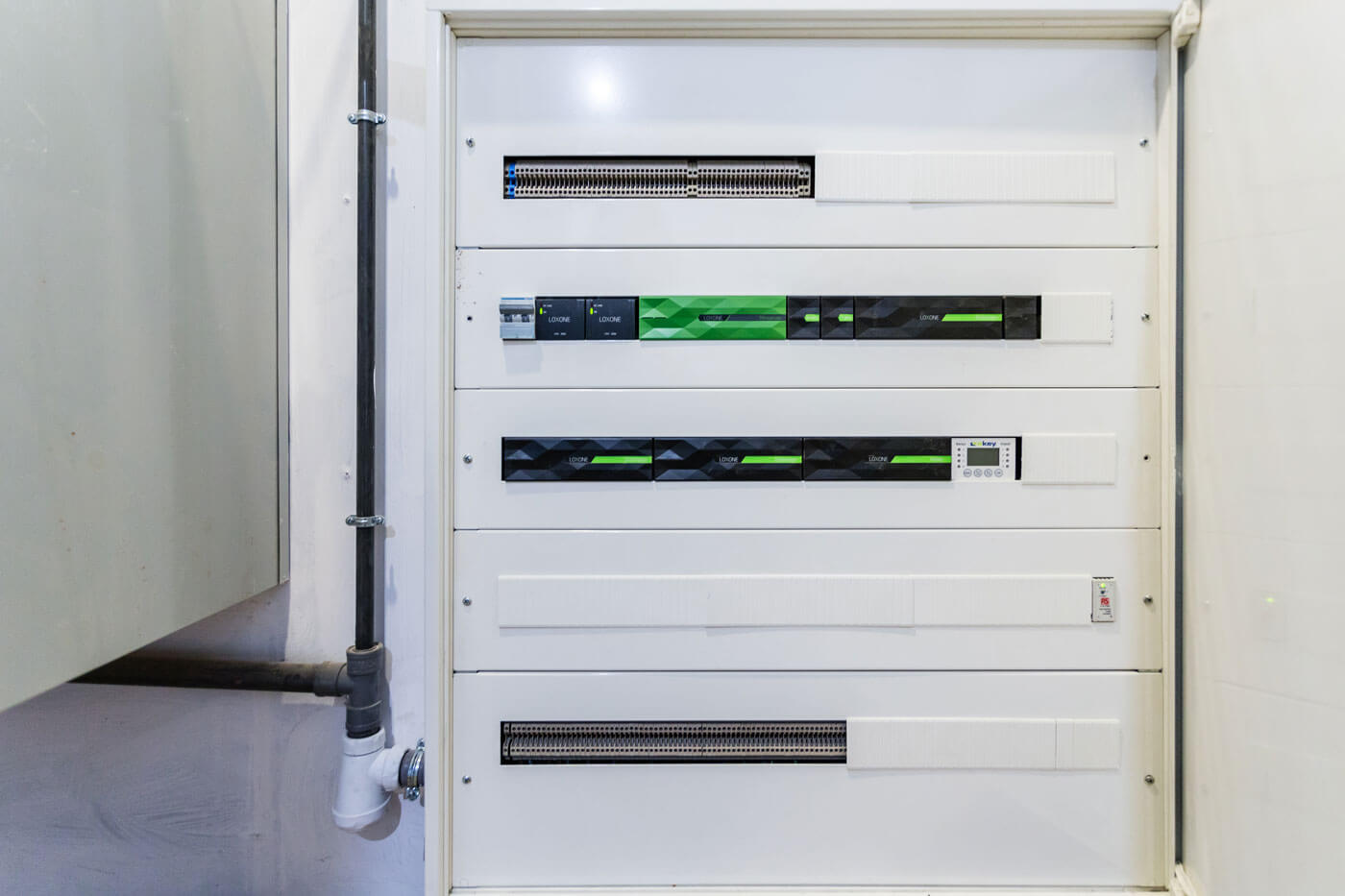 Loxone can seamlessly integrate several systems with one goal in mind: maximum energy efficiency. Thus, bringing the homeowner unmatched savings and comfort. In this passive solar house, the ventilation system, air conditioning, DHW recirculation, solar panels and blinds all play a role together as a team. Their “coach”, our Miniserver communicates their game plan and the best actions for each to take to work together to reach this energy-saving goal.