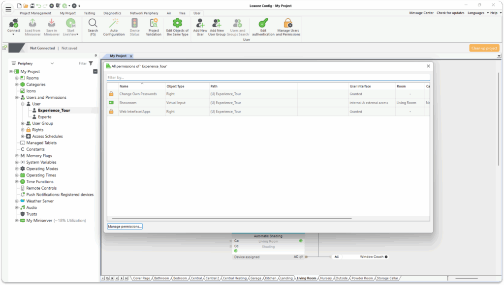 For the Digital Experience Tour, different lighting scenes with different IDs must be created in Loxone Config. The ID is required to ensure that the correct lighting scene is started. We recommend making the fine adjustments to the lighting scenes in the free Loxone app.