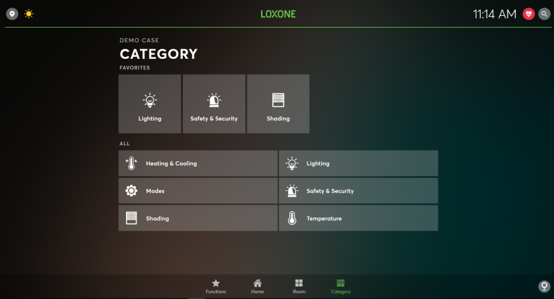 By tapping ‘CATEGORY’ at the bottom of the screen, you will see each individual category type. By selecting any of the categories, i.e Lighting; the screen will change to show you all available Lighting functions in the house. App Downloads