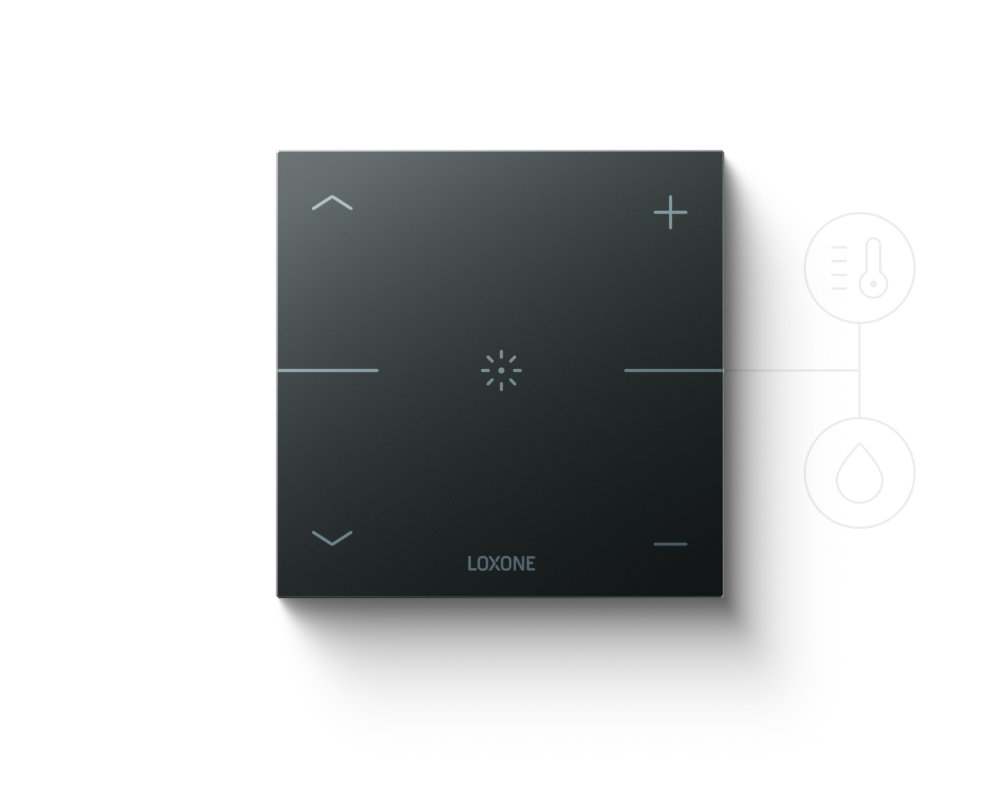 The Touch Pure Air connects wirelessly to the Loxone Air system. Thanks to its energy-efficient technology, the Touch Pure Air can be powered by either 24VDC or by battery.