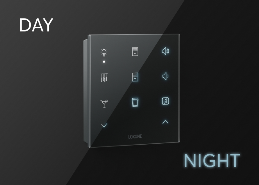 The Anthracite version of the Touch Pure Flex can be equipped with illuminated icons. With a bluish glow, this effect creates a stunning look in the dark.