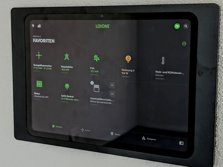 string(831) "In this project, both the main building and the five rental apartments were equipped with Loxone to create a comprehensive smart home system. The building is equipped with a powerful 30 kWp photovoltaic system, a geothermal heat pump with freecooling and several charging stations for electric vehicles. Loxone is responsible for visualizing the entire energy flow - from electrical energy to heat and water consumption. In addition, the system controls the energy management of the charging stations to ensure efficient and intelligent use of resources. All luminaires in the building were controlled either with the in-house Loxone luminaires or via DALI. Among other things, this solution enables the lighting in the stairwell to be switched on gently and smoothly, which is not only functional but also aesthetically pleasing. "