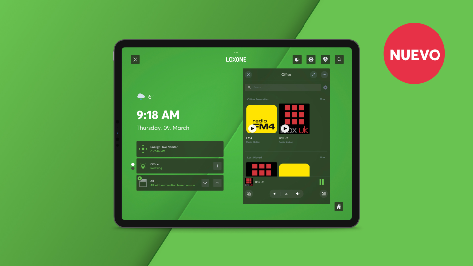 Con el nuevo Ambient Mode, siempre tendrás una visión general de toda la información importante sobre tu edificio o vivienda automatizada con Loxone. Una función muy llamativa que se puede personalizar libremente. La nueva función ya está disponible para tablets y ordenadores mediante la Loxone App (MacOS, Windows) y la interfaz web.