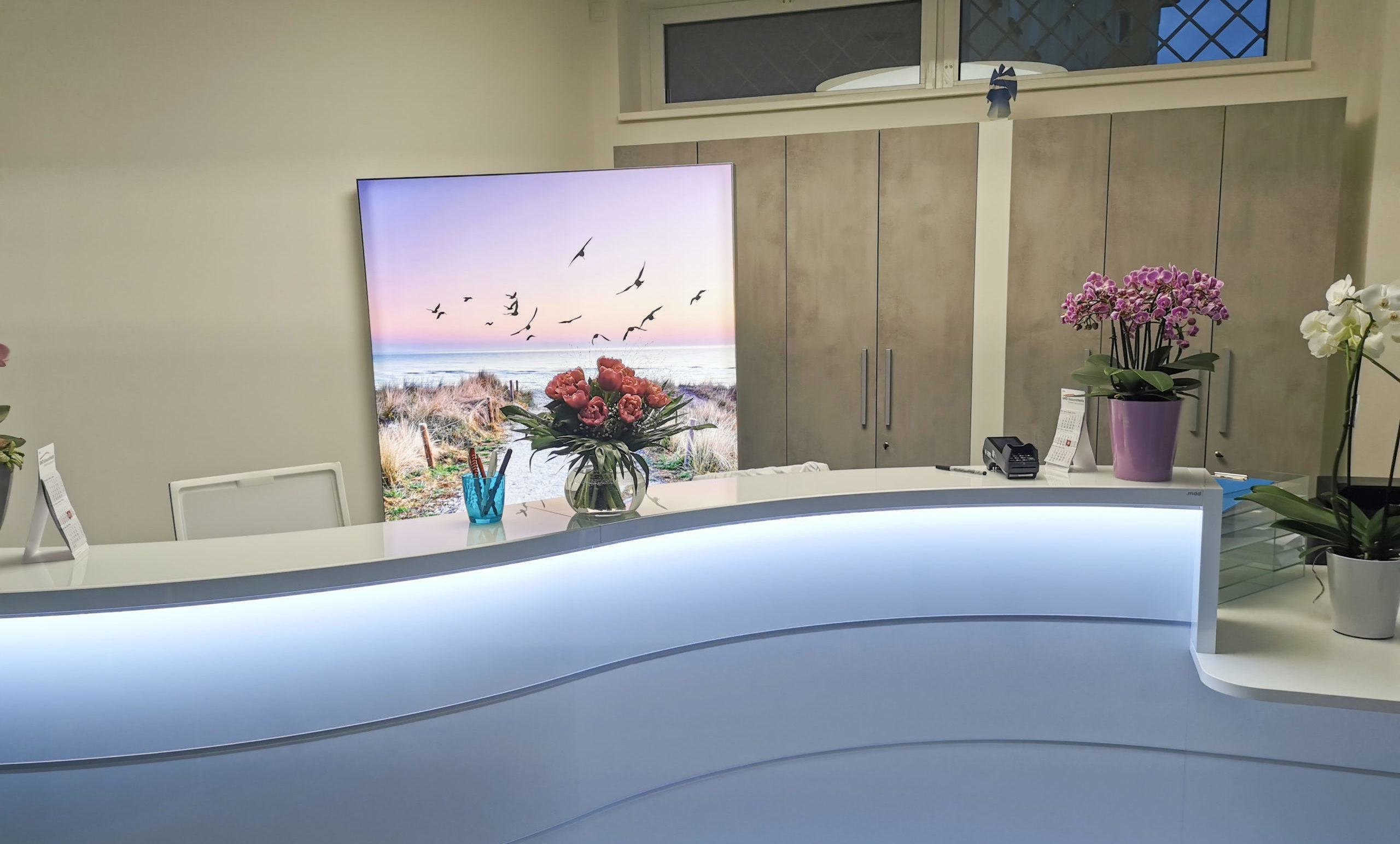 El centro está dividido en dos partes, por un lado, la clínica ginecológica y, por otro lado, la terapia oncológica. El objetivo principal de la automatización era conseguir un control fácil con integración de la app, es importante que los pacientes se sientan cómodos, por lo que se quería centrar especialmente en la apariencia del espacio y la iluminación para crear una atmósfera de bienestar.