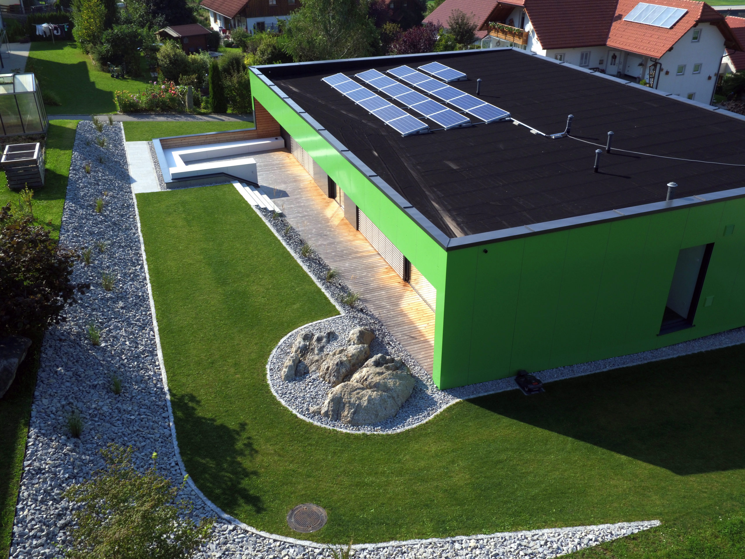 Integrar las placas solares de la vivienda Biopasiva en el sistema Loxone es otro de los beneficiosos de la automatización. Se gestiona la producción de energía fotovoltaica para derivarla a los consumos que se precisen en la vivienda, como radiadores, calentadores, iluminación, etc.