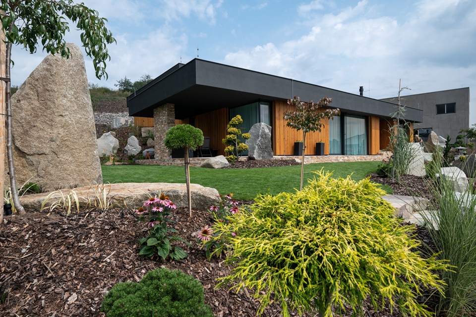 La parte más difícil fue lidiar con la fuerte pendiente en la que se construyó la casa. Teníamos que tener en cuenta una diferencia de altura de no menos de 14 metros y queríamos utilizar el terreno de la forma más óptima posible. Aún así, logramos integrar la casa muy bien en el paisaje y crear un bonito jardín en la parte delantera y trasera de la vivienda.