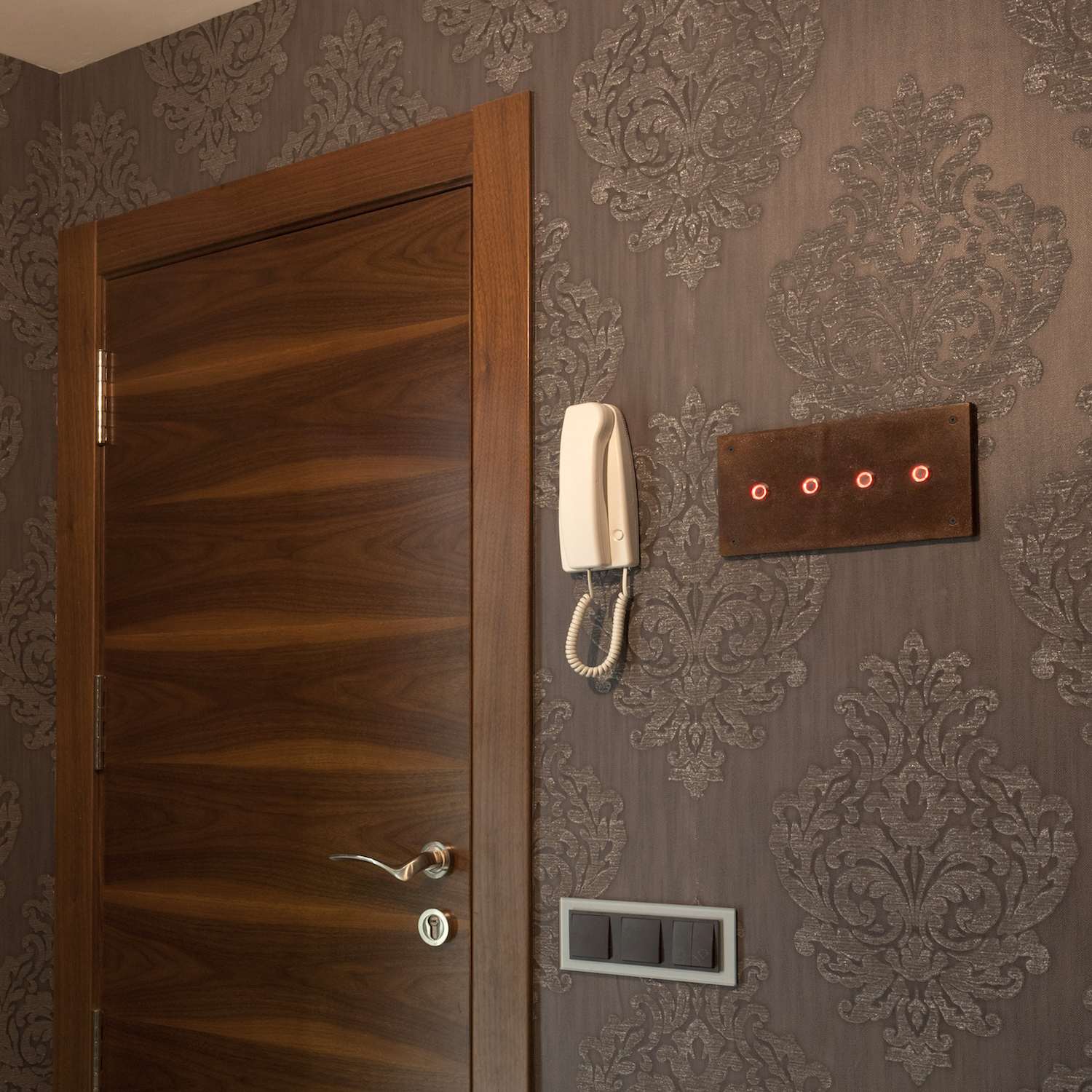 Un aspecto muy importante para el propietario es que necesita recibir paquetes, también cuando está fuera de casa, de forma que tiene la puerta de entrada a la escalera automatizada y cuando viene el mensajero, puede abrir desde su Smartphone esté donde esté.