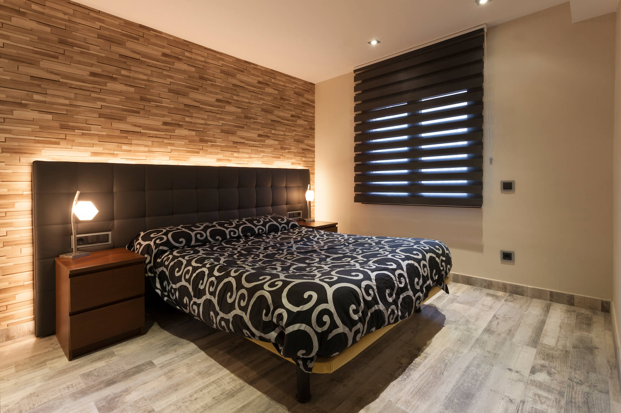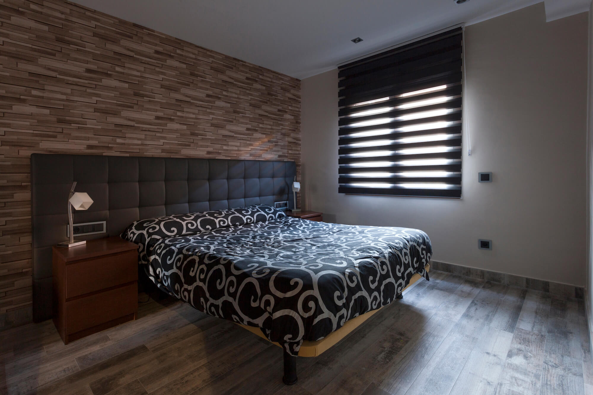 En la habitación principal, se ha integrado una tira LED en el cabezal de la cama, provocando un efecto exclusivo e impactante. Estas luces, además de ser un componente decorativo excelente, tiene programada la función de despertador, de forma que a la hora de levantarse se enciende y apaga intermitentemente. Al ser una luz suave, provoca un despertar agradable con lo que los propietarios están encantados.