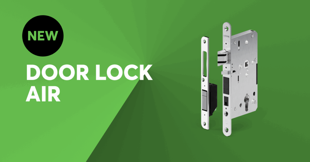 Recomendamos instalar el Door Lock Air en puertas interiores, como el acceso a almacenes, parkings, zonas privadas en edificios comerciales o habitaciones de hotel, ya que no es una cerradura de seguridad que desplace el cerrojo o resbalón dentro del marco al cerrar.
