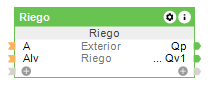 El bloque de funciones Riego se encarga del suministro óptimo de agua. Cuando se inicia el riego, las válvulas se activan una tras otra durante el tiempo establecido. El riego se puede iniciar manualmente a través de la visualización y se pueden configurar los respectivos tiempos de riego.