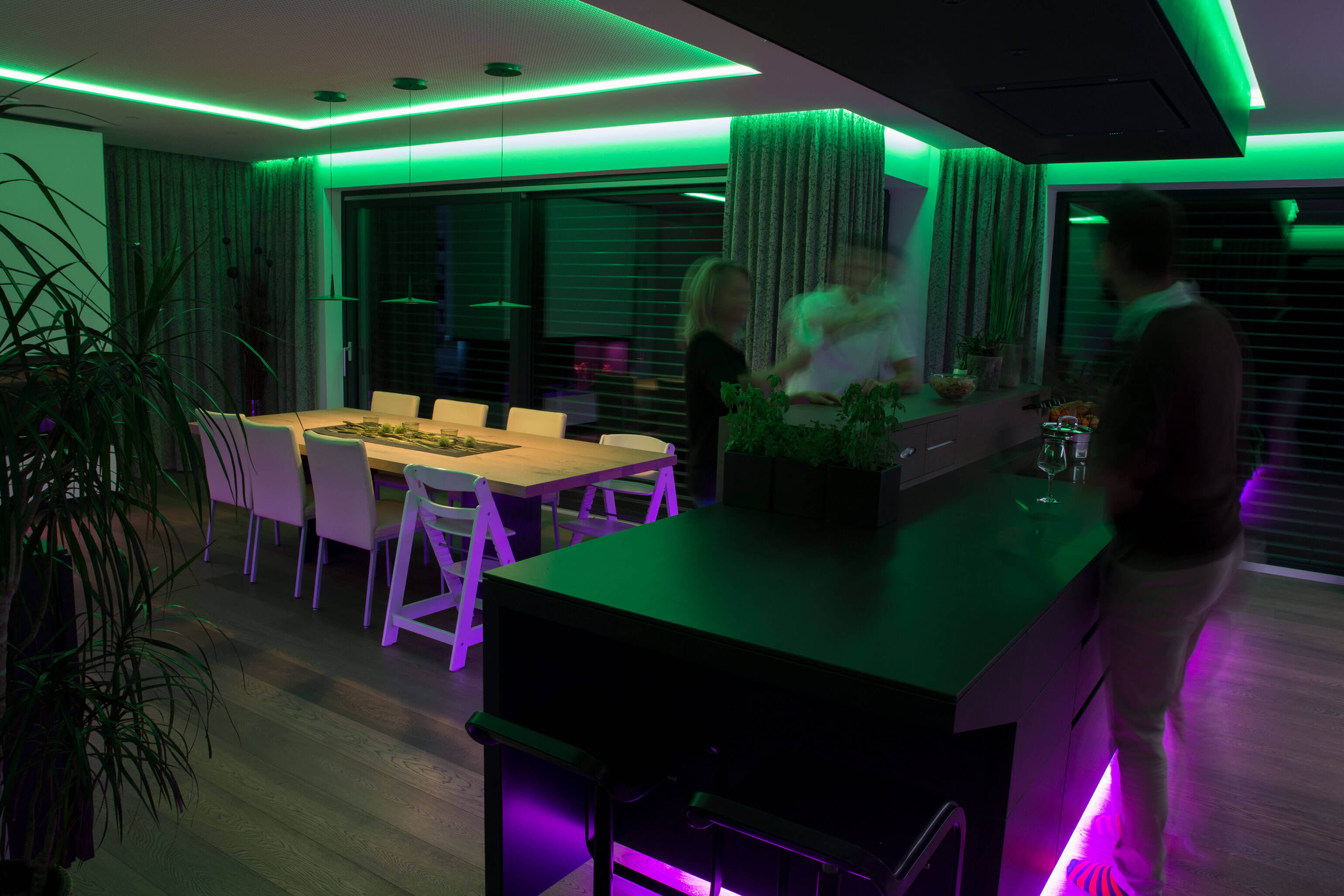 Una de las características importantes en la iluminación inteligente es poder adaptar las combinaciones de luces a las actividades a realizar en la estancia. Mediante la intensidad de brillo de las luces y el color, se pueden crear ambientes realmente únicos y funcionales.