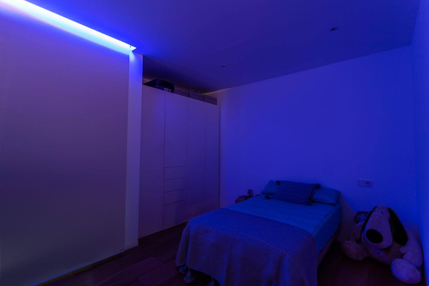 “El primero que se pone el pijama activa el modo noche con un triple clic desde la habitación, y las luces se cambian entonces a tonos relajantes.”