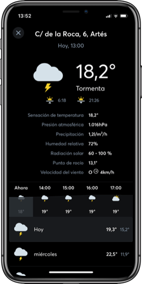 El Servicio meteorológico está totalmente integrado a la App de Loxone. Los datos y pronósticos meteorológicos diarios siempre están disponibles en tu Smartphone o tablet.