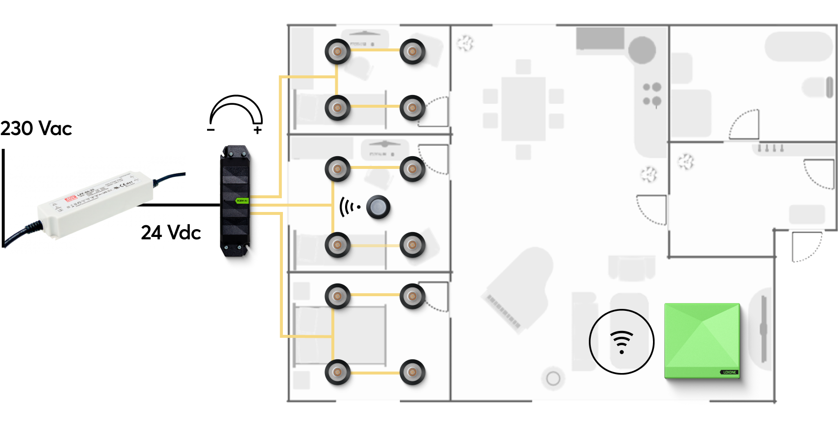Otra opción versátil son las tiras LED, ideales para añadir un toque de personalidad y estilo a cualquier espacio. Con la tecnología Air de Loxone, podemos controlar la iluminación de estas tiras de manera precisa y eficiente. Solo necesitamos: