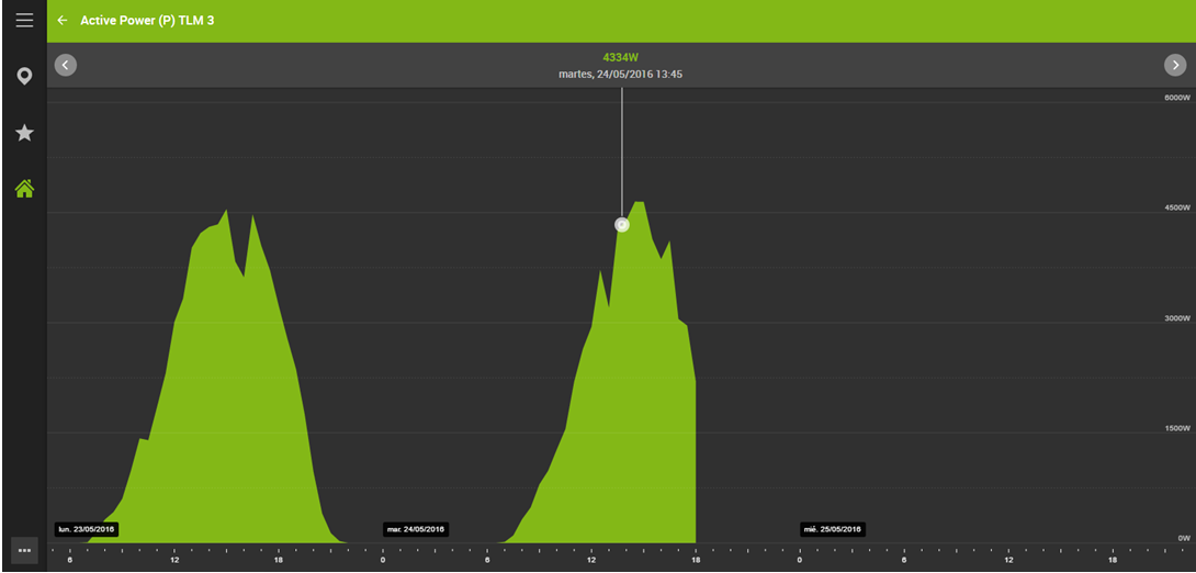 Además, gracias a las gráficas, tenemos el histórico de producción de cada inversor, permitiendo estudiar el comportamiento, ver los picos de producción y la tendencia.