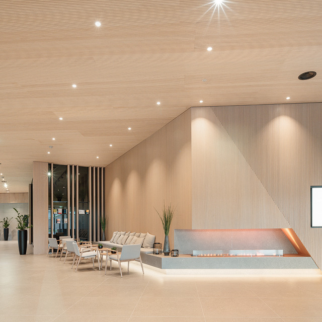 Al entrar en la habitación, se activa una escena de iluminación automática, ajustada para ofrecer una bienvenida cómoda y profesional. Además, también se puede controlar la iluminación de las zonas comunes, adaptándola de forma inteligente a los distintos momentos del día.