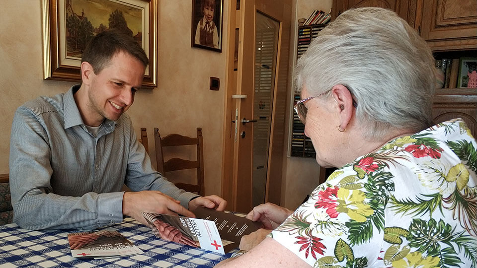 Aquí un ejemplo que, desgraciadamente, muchas personas mayores tienen que afrontar. De noche, antes de irse a la cama, una abuela camina del comedor al dormitorio. Desafortunadamente, cae sobre la alfombra, pero no consigue levantarse por sí misma.