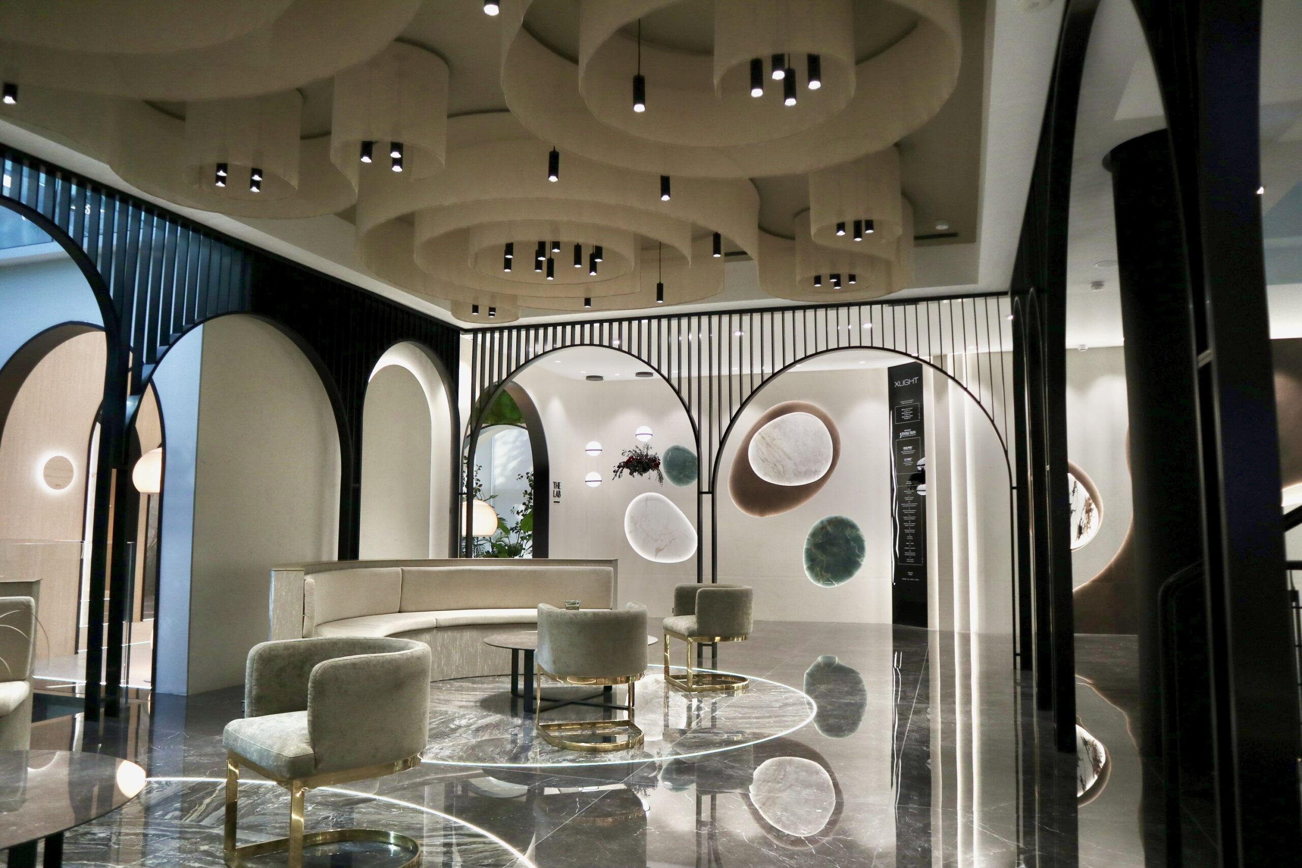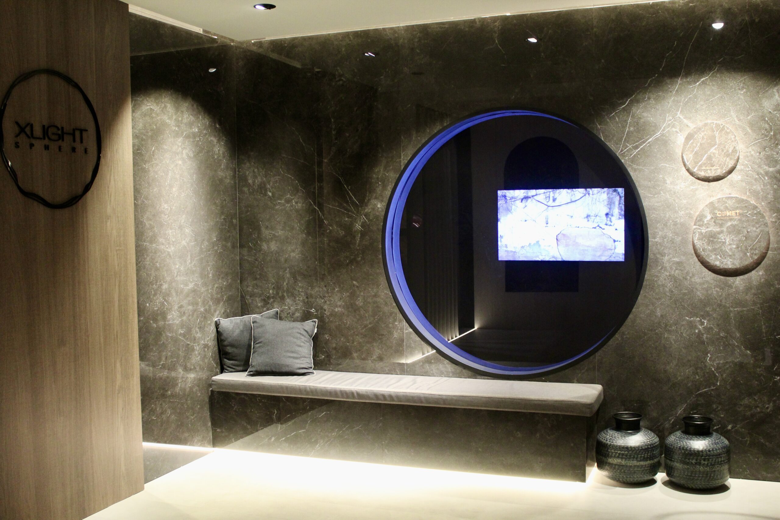 En un espacio de producto, la iluminación lo es todo: transforma superficies, realza texturas y define el valor percibido. En el proyecto con Porcelanosa se diseñaron escenas de iluminación específicas para cada exposición que ofrecen una amplia gama de posibilidades para personalizar la experiencia. Desde escenas de bienvenida dónde se juega con luz cálida, pasando por el «focus de producto» con haces de luz dirigidos para resaltar texturas y colores, hasta escenas de combinación de audio e iluminación para presentaciones guiadas activadas por NFC.