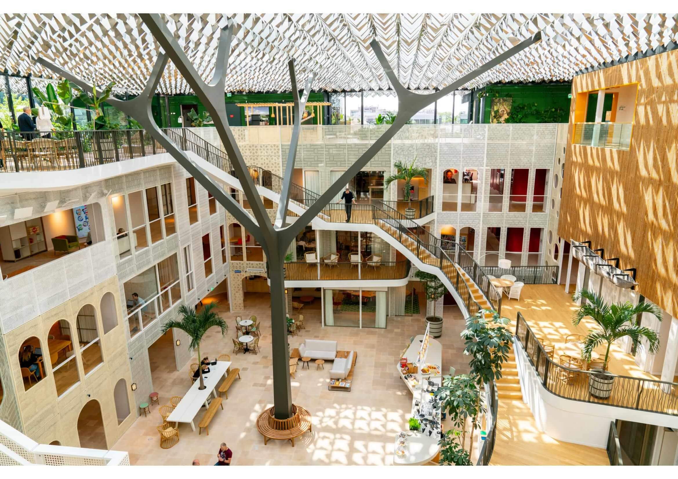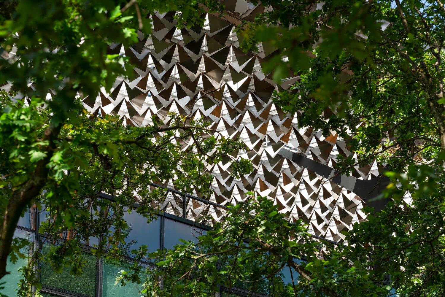 La protección solar es automática y tiene en cuenta la posición de la sala con respecto al sol, así como la incidencia de la luz natural. De esta manera, los empleados no quedan cegados por los rayos del sol incidiendo en los ojos o en la pantalla de su ordenador. Además, en cualquier momento, un clic en el pulsador Touch puede levantar o bajar las persianas en ese lado específico del edificio.