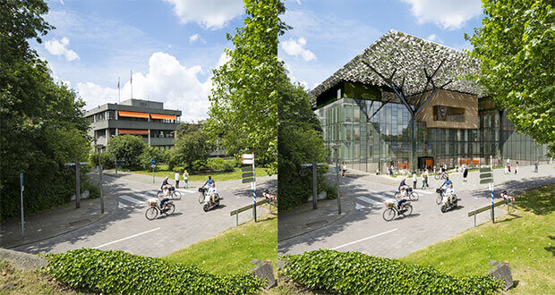 La oficina de lotería «De Goede Doelen» es el resultado de una renovación de dos años de un edificio vacío y en ruinas en Amsterdam, Países Bajos. La empresa constructora J.P. Van Eesteren y el estudio de arquitectura Benthem Crouwel lo han transformado en el edificio más sostenible de los Países Bajos. Este último en su cartera de proyectos incluye el aeropuerto de Schiphol, la sala de conciertos Ziggo Dome en Ámsterdam y la biblioteca de la Universidad de Friburgo.