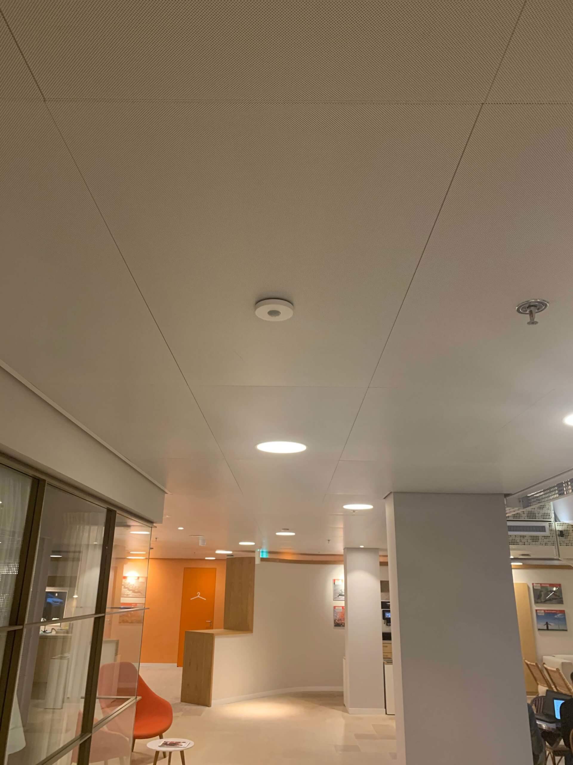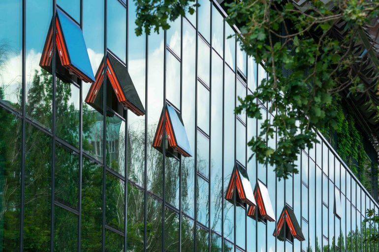 Hay sensores de CO2 que miden el contenido de CO2 en toda la oficina. Si este excede un cierto valor límite, el sistema de ventilación se activará automáticamente. Este puede ser mediante el sistema mecánico o natural. Se utilizará ventilación natural cuando las condiciones climáticas lo permiten. Estas circunstancias son: