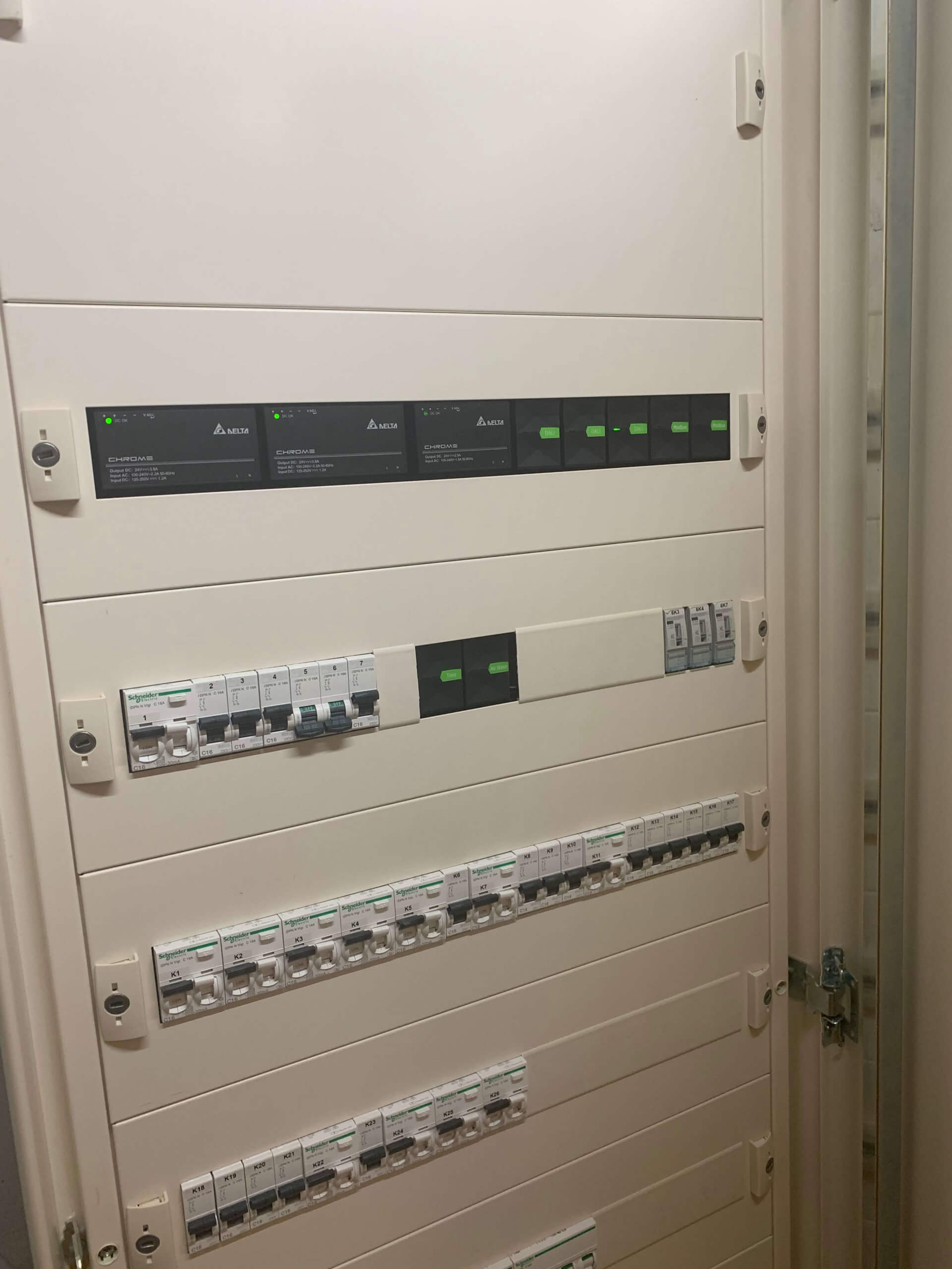 - Por la mañana, la iluminación se enciende automáticamente y garantiza que los empleados puedan empezar a trabajar inmediatamente en lugar de encender las luces en todas partes. Por la noche se evita que alguien pueda olvidarse de apagar las luces, ya que se cierran solas y se evitan costes energéticos innecesarios para el empresario.