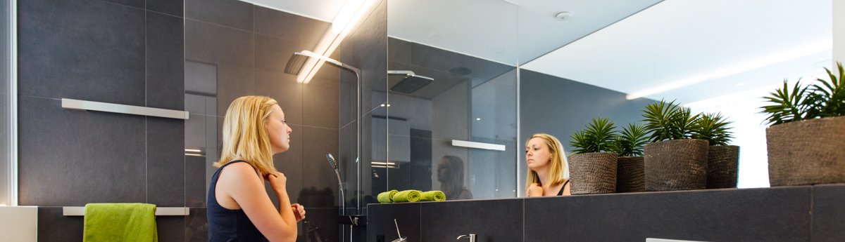 El control de iluminación simple con sensores es muy práctico pero pueden haber habitaciones donde no quieras tener siempre la misma intensidad de luz, por ejemplo si tienes un baño al lado de la habitación. Cuando te levantas por la noche normalmente es preferible tener una luz suave y puedes no querer que se encienda el extractor por el ruido; en cambio, cuando te levantas por la mañana quieres que la luz sea más brillante, que se ilumine la luz del espejo y el extractor se encienda para ducharte. Disponiendo del Miniserver, puedes programar los sensores para que activen escenas diferentes en horarios concretos.