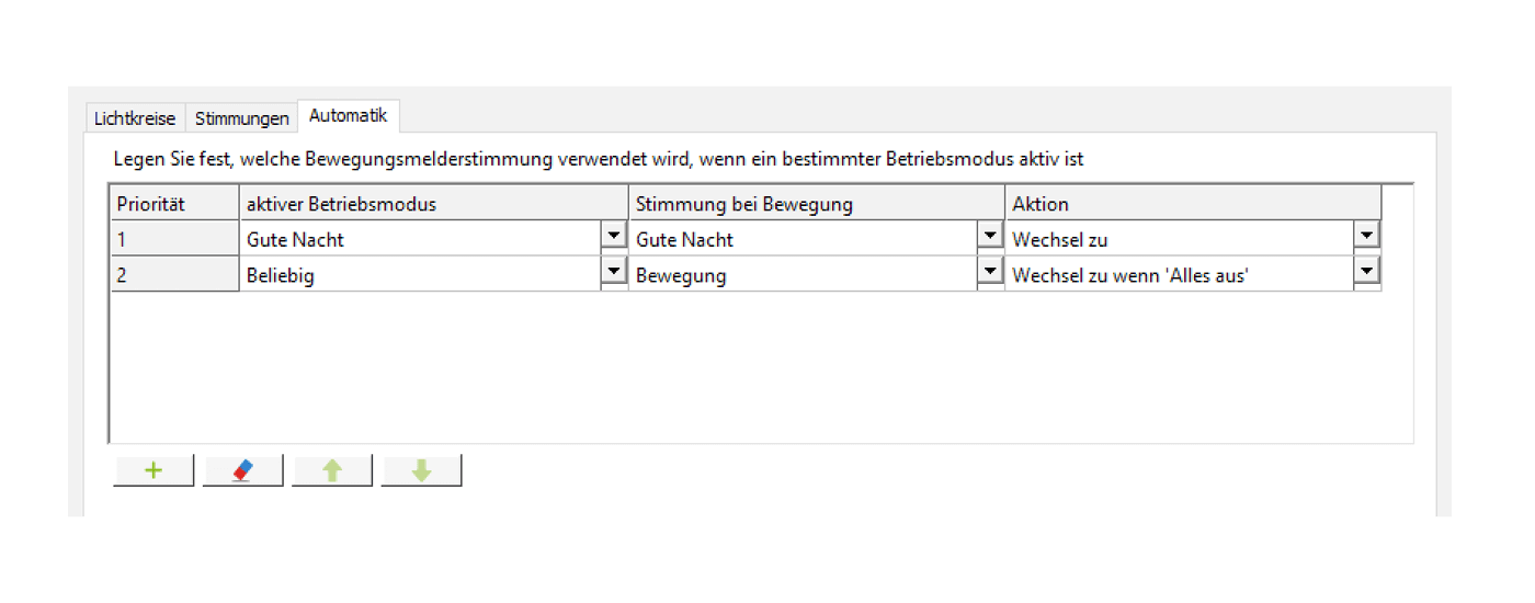 Por ejemplo, se puede determinar fácilmente qué luces deben activarse durante el movimiento cuando la casa está en modo noche.