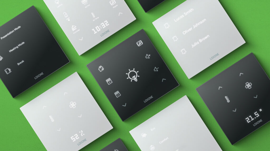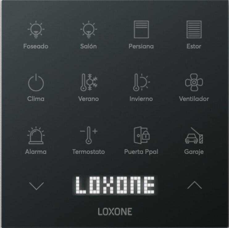 El Loxone Touch Pure Flex es el elemento de control más flexible para la automatización de casas y edificios. Dispone de hasta 12 posiciones diferentes para iconos, que puedes personalizar libremente eligiendo entre varios diseños. Tú decides qué funciones controlar según las necesidades específicas de tu proyecto.