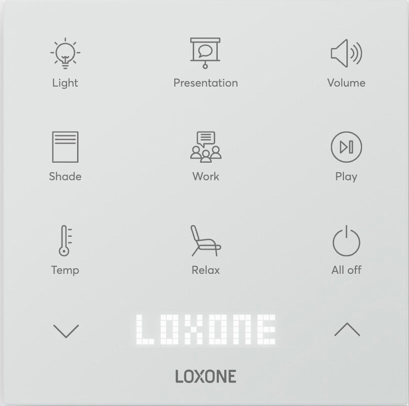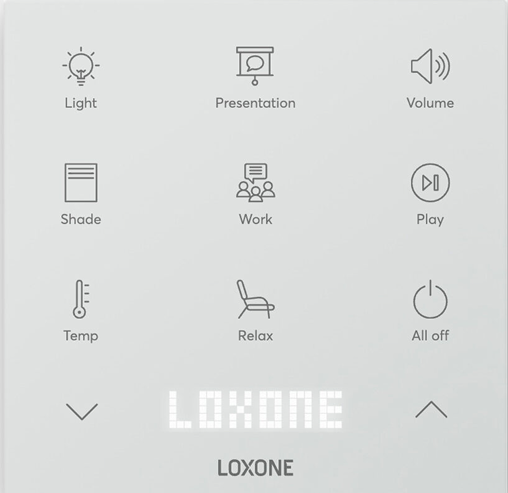 Este Touch Pure Flex es ideal para entornos profesionales como oficinas, espacios de coworking y mucho más. Con solo pulsar el botón «Presentación», la sala se adapta al modo presentación: las persianas se bajan, el proyector se enciende, la pantalla desciende automáticamente y la iluminación se atenúa. Para facilitar la concentración durante el trabajo, al pulsar el botón «Trabajo», la iluminación se ajusta a una intensidad similar a la luz natural y la música baja de volumen. El botón «Relax» crea una agradable atmósfera con luces tenues de colores que cambian suavemente, acompañadas de la playlist «Relax».