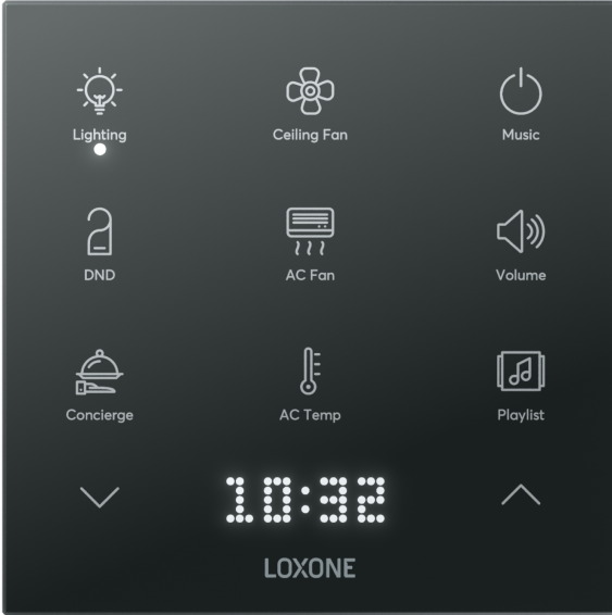 Este Touch Pure Flex lo tiene todo para ofrecer a los huéspedes una experiencia de control intuitiva. Pueden gestionar todas las funciones esenciales de la habitación: desde iluminación, climatización, audio, funciones específicas de hotel como «No molestar» (DND) y solicitud de servicio