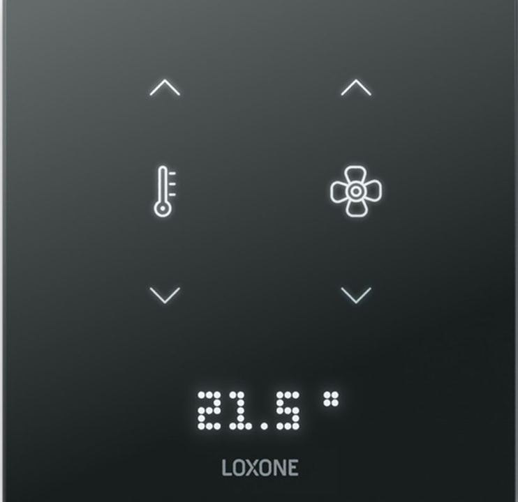 Con esta configuración del Touch Pure Flex tienes todo lo necesario para gestionar el clima de la estancia de forma intuitiva y visual. A la izquierda, el icono del termómetro te permite ajustar la temperatura deseada, y a la derecha, el icono del ventilador regula la velocidad del aire. Gracias a la pantalla integrada, puedes ver en tiempo real la temperatura establecida. Una solución compacta y potente para mantener siempre el confort perfecto con solo un toque.