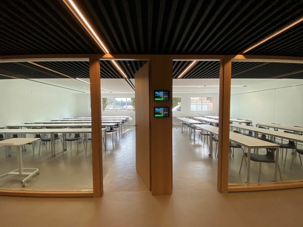 Hemos llevado a cabo una reforma integral del edificio, transformándolo en un espacio educativo moderno con aulas avanzadas. Gracias al sistema LOXONE, gestionamos de manera eficiente y centralizada la alarma, iluminación, climatización, renovación del aire, videoportero, sistema de audio, sistema de emergencia para aseos adaptados y el control de consumos eléctricos. Este enfoque integral no solo mejora la funcionalidad del edificio, sino que también garantiza un ambiente de aprendizaje cómodo, seguro y energéticamente eficiente para todos los usuarios.