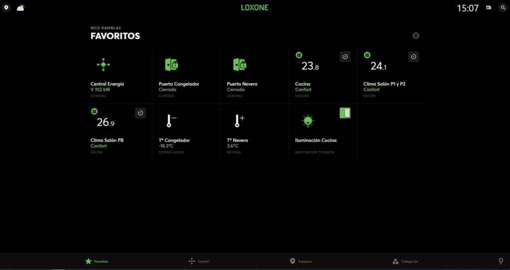 Además de lo mencionado anteriormente, también monitorizmos los medidores de energía mediante modbus TCP, la iluminación completa del restaurante, las cortinas de aire en la entrada del salón, la bomba de circulación de agua para los elementos refrigerados por agua y las temperaturas del aeroenfriador.