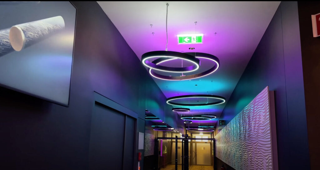 Loxone controla de forma inteligente toda la iluminación del edificio, independientemente de si se trata de la iluminación de la escalera, la iluminación indirecta o el juego de colores de la zona de juegos.